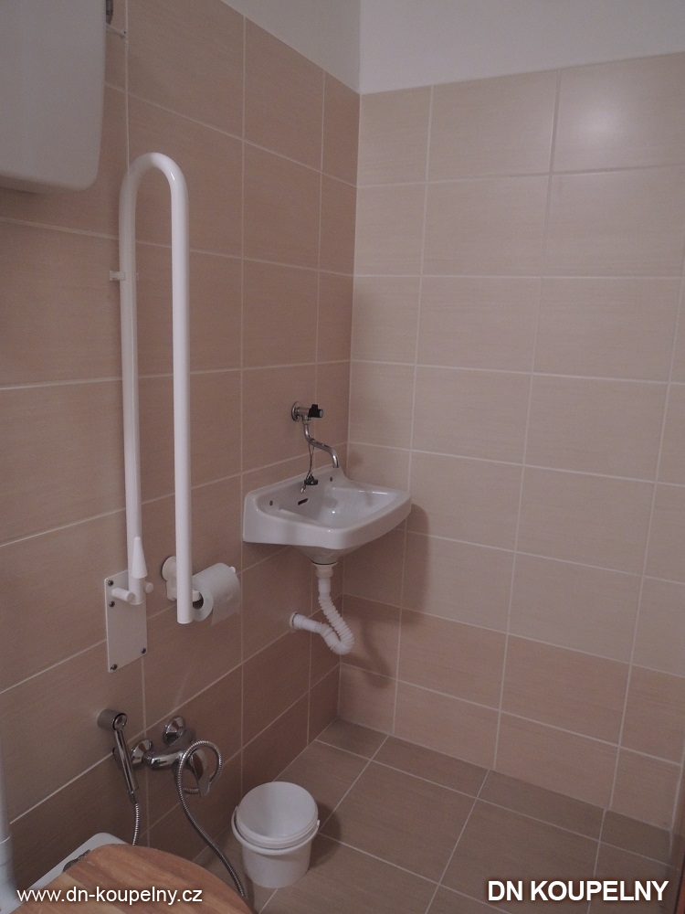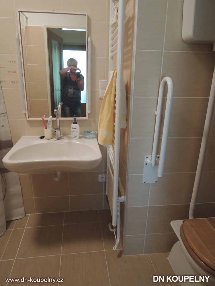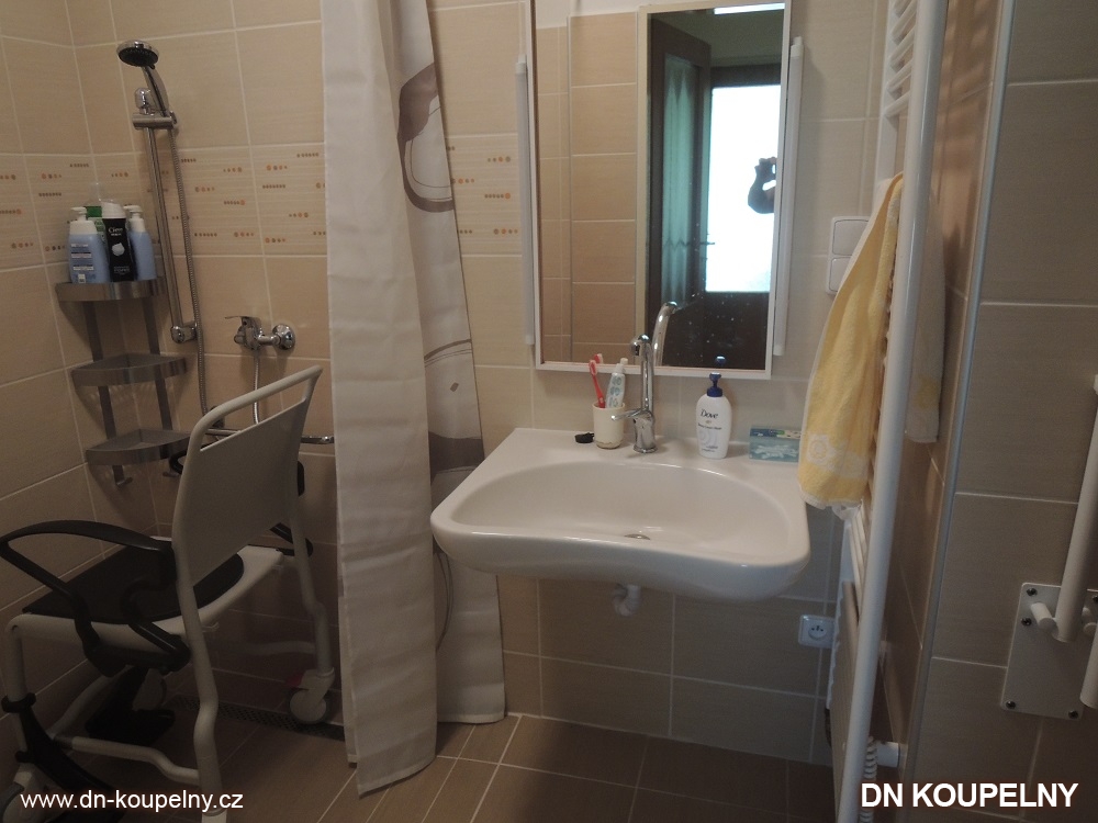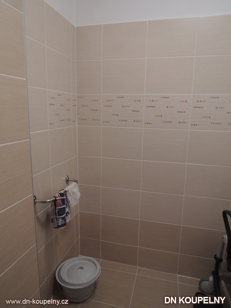 Na obrázcích vidíte stav po provedení kompletní rekonstrukce v koupelně, kdy byla vybudována bezbariérová koupelna pro vozíčkáře. Zhotovení této bezbariérové koupelny bylo provedeno v rodinném domku Ostrava. Bezbariérový sprchový kout a celý sprchový prostor je oddělen pouze plachtou pro pohodlný vjezd invalidního vozíku. Je instalováno speciálně tvarované umyvadlo pro vozíčkáře. Toaleta má z prostorových důvodů vrchní splachovací nádržku a WC je z obou stran opatřeno sklopným madlem pro invalidní osobu, vozíčkáře. Madlo pro invalidy je určeno k plné zátěži a slouží k přesedání na invalidní vozík.