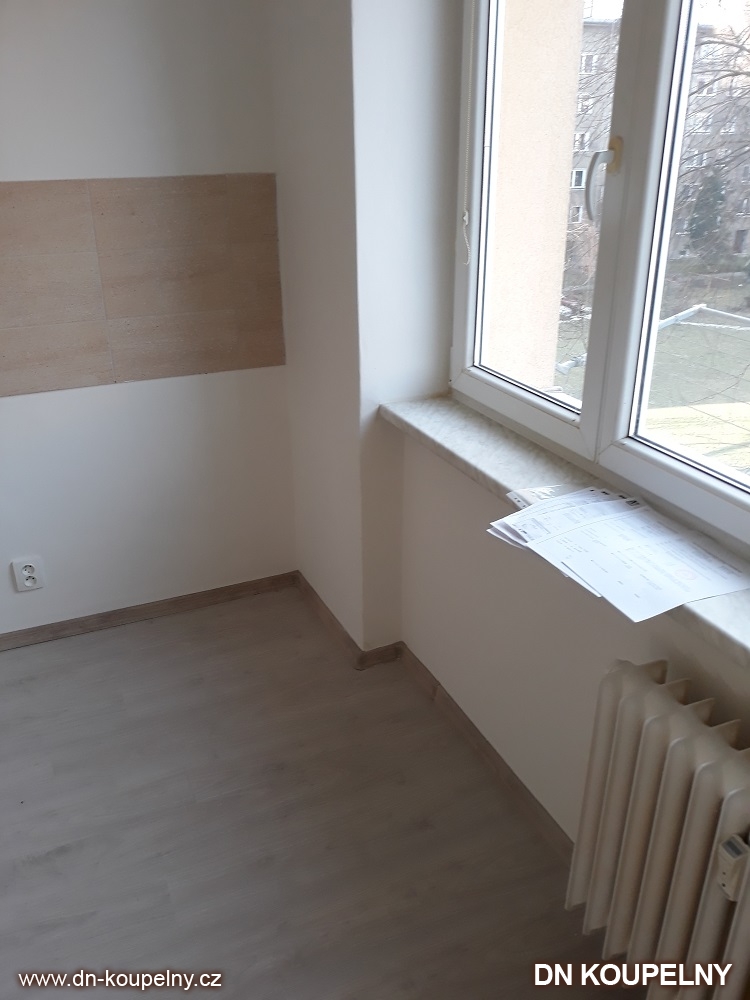 Kompletní rekonstrukce bytu proběhla v bytovém domě v Ostravě. V kuchyni byla provedena kompletní příprava pro novou kuchyňskou linku, zhotoveny všechny instalace, podlaha a obklady.