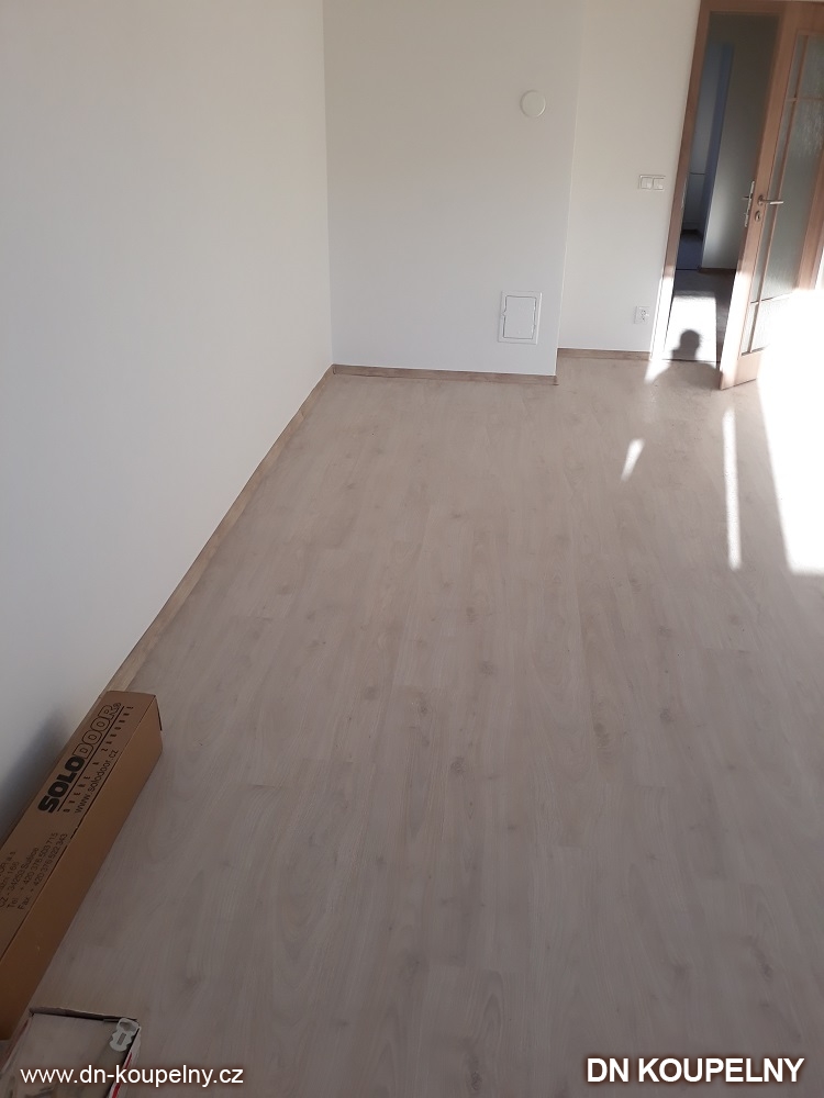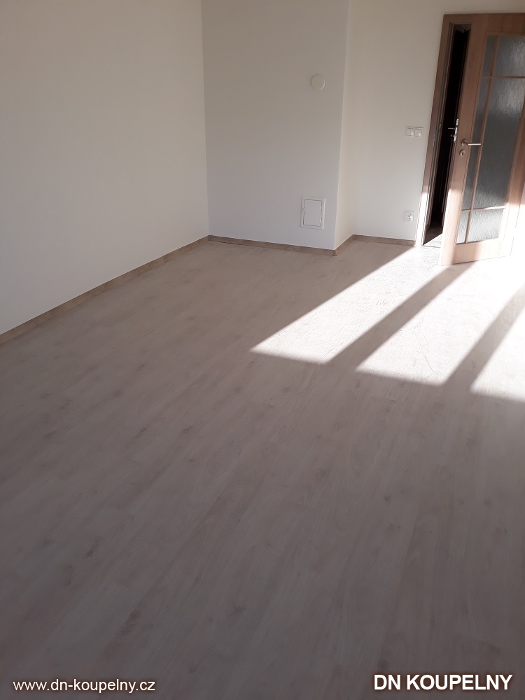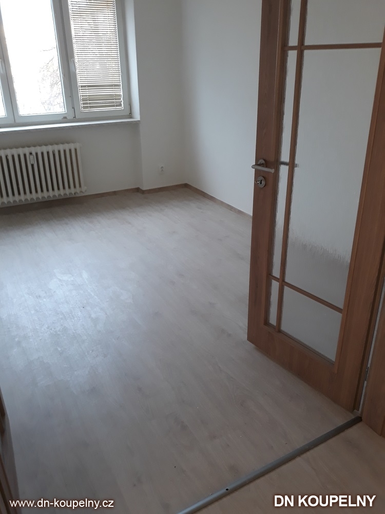 Pokládku podlahy provádíme v rámci kompletní rekonstrukce bytu nebo její části. Pokládka plovoucí podlahy byla provedena v pokojích, v chodbě a v kuchyni. V koupelně a na WC se většinou volí keramická dlažba.Obkladačské práce a pokládka dlažby v koupelně: rekonstrukce koupelny na klíč, pokládka dlažby na WC: rekonstrukce WC. Rekonstrukce podlahy v bytě byla součástí kompletní rekonstrukce bytu.