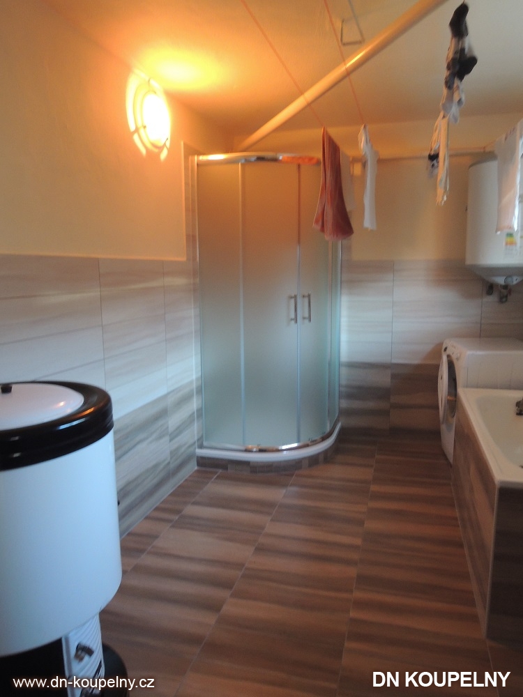 Ačkoliv se sprchové kouty instalují především v koupelnách, někdy bývá požadavkem zákazníka vybudovat sprchovací prostor v suterénní místnosti rodinného domku. V následující ukázce můžete vidět, jak lze místnost, která původně sloužila u uskladnění nářadí, předělat na místnost se sprchovým koutem, vanou, pračkou a ohřívačem vody.