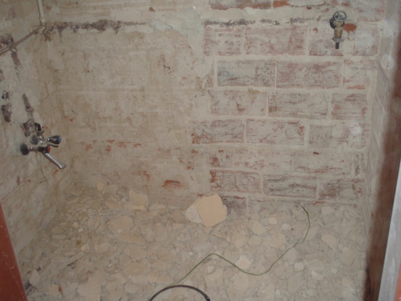 - Osekání omítky a obkladu v koupelně a WC, osekání podlahy v koupelně a WC, vybourání vanové obezdívky, případně soklu za vanou.