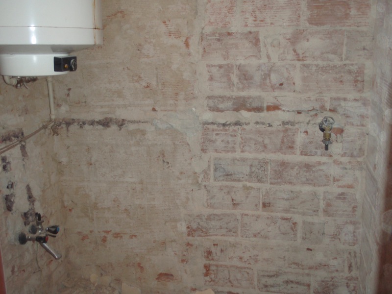 - Úprava stěn v koupelně penetrací, omítkou nebo lepícím tmelem.